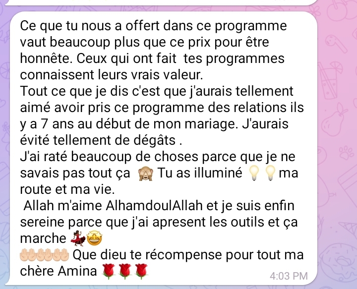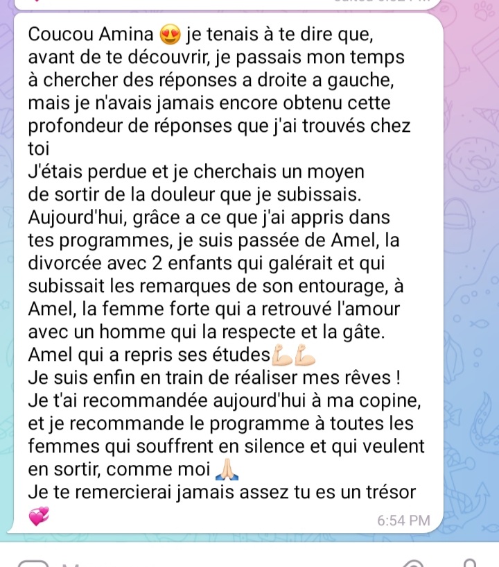 Ce programme est l'endroit où tu apprendras à transformer ton être de l'intérieur, a briser tes blocages les plus profonds et a casser le cercle vicieux pour t'aider à décrypter rapidement si la personne que tu fréquente est alignée avec tes aspirations de vie, tes besoins, tes valeurs, et tes rêves d’un mariage solide et épanoui.