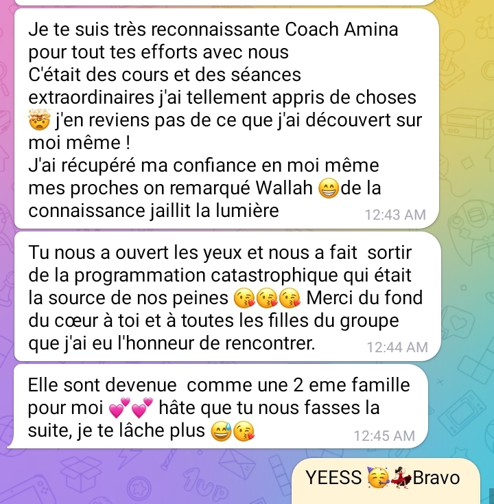 Des seances de discussions et un Coaching de groupe en direct avec Coach Amina